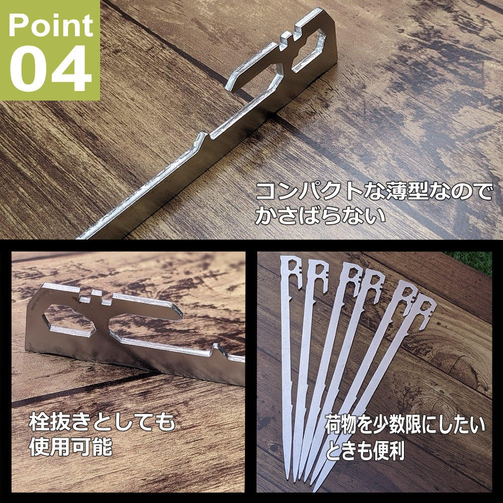 ◆【薄型軽量コンパクトペグ】薄型設計でコンパクトに収納できるステンレス製ペグ。今までのペグと違いかさばらず、持ち運び、収納に大変便利