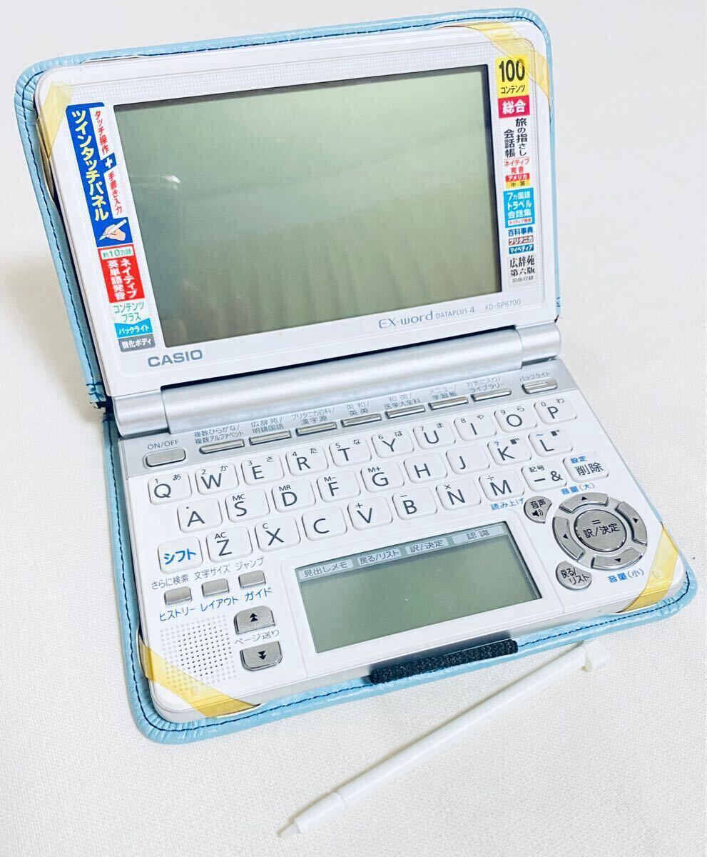 電子辞書 CASIO EX-word DATAPLUS 4 XD-SP6700 本体:ホワイト / 専用ハードカバー:ライトブルー タッチ操作、手書き入力(専用ペン付)