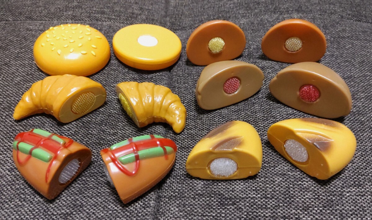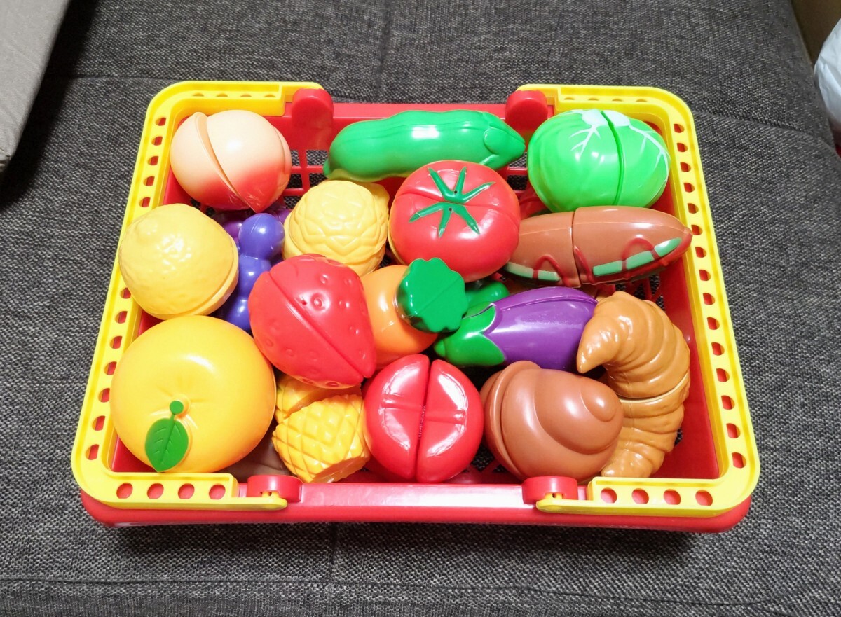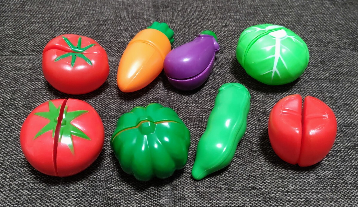 ・アピタだったと思いますがキッズ玩具コーナーにておままごとセットを購入しました。その後果物、野菜、パンをもう少し増やしたく、100円SHOP等にて購入したものもあります。