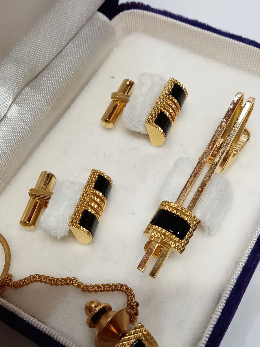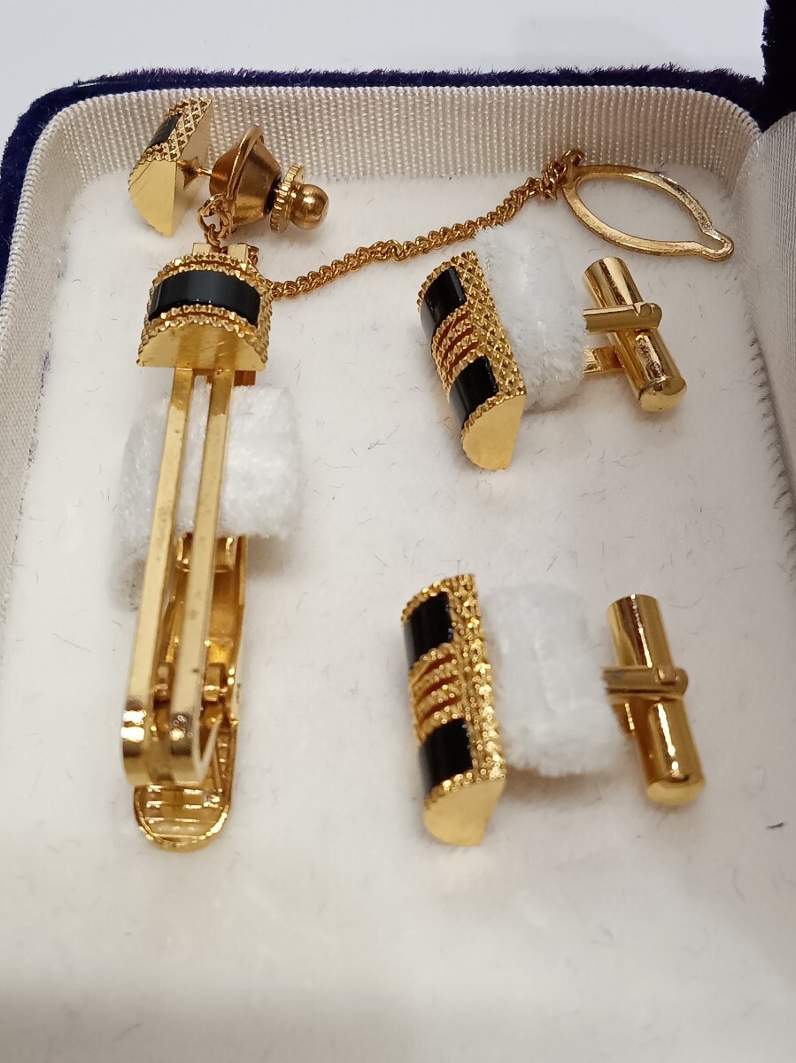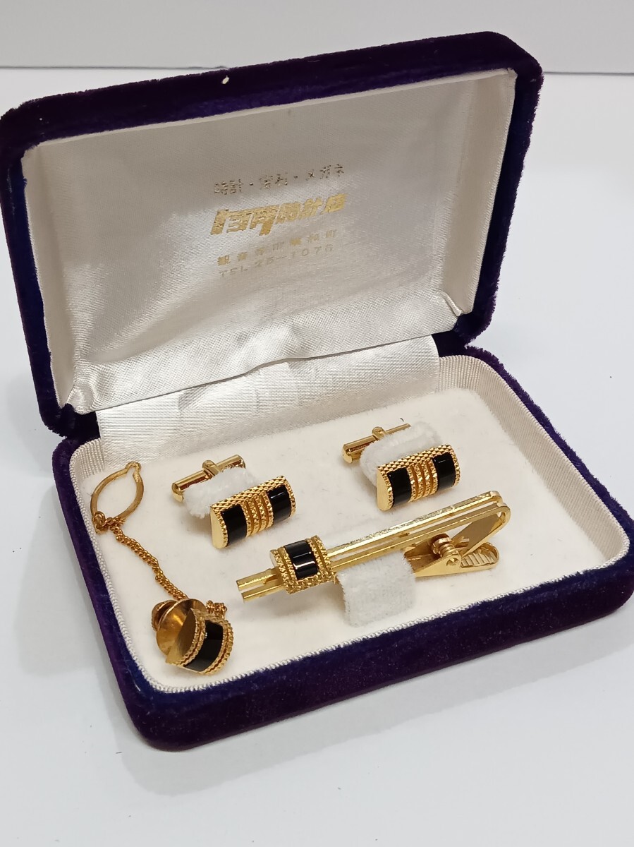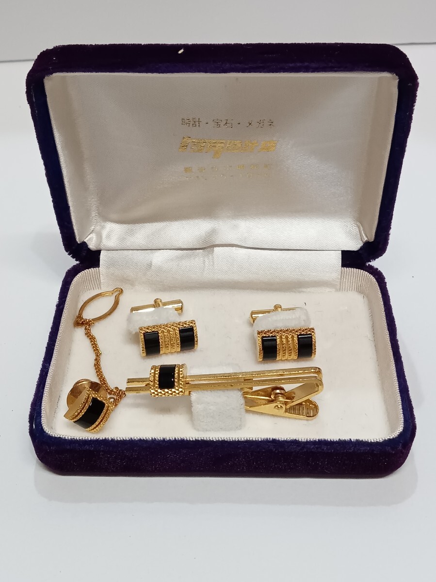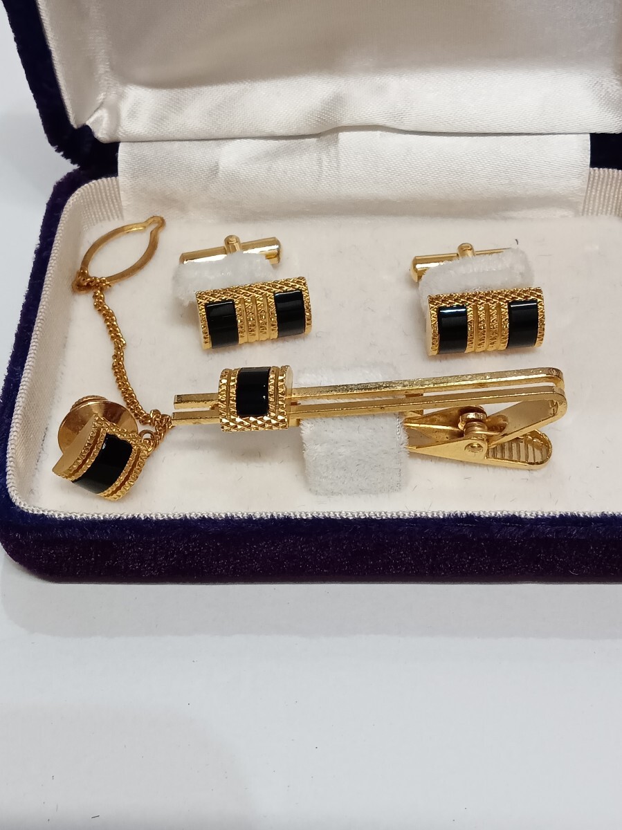メンズ ネクタイピン カフス セット ブラックストーン カラーストーン タイピン