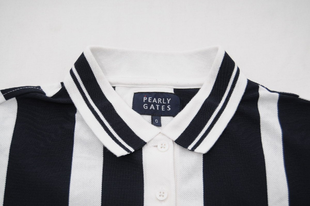 coco 中古【SALE】パーリーゲイツ PEARLY GATES レディース 半袖ポロシャツ 0(S) 紺×白 ストライプ レターパックプラス発送可 67306