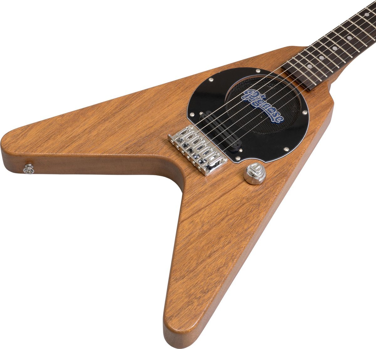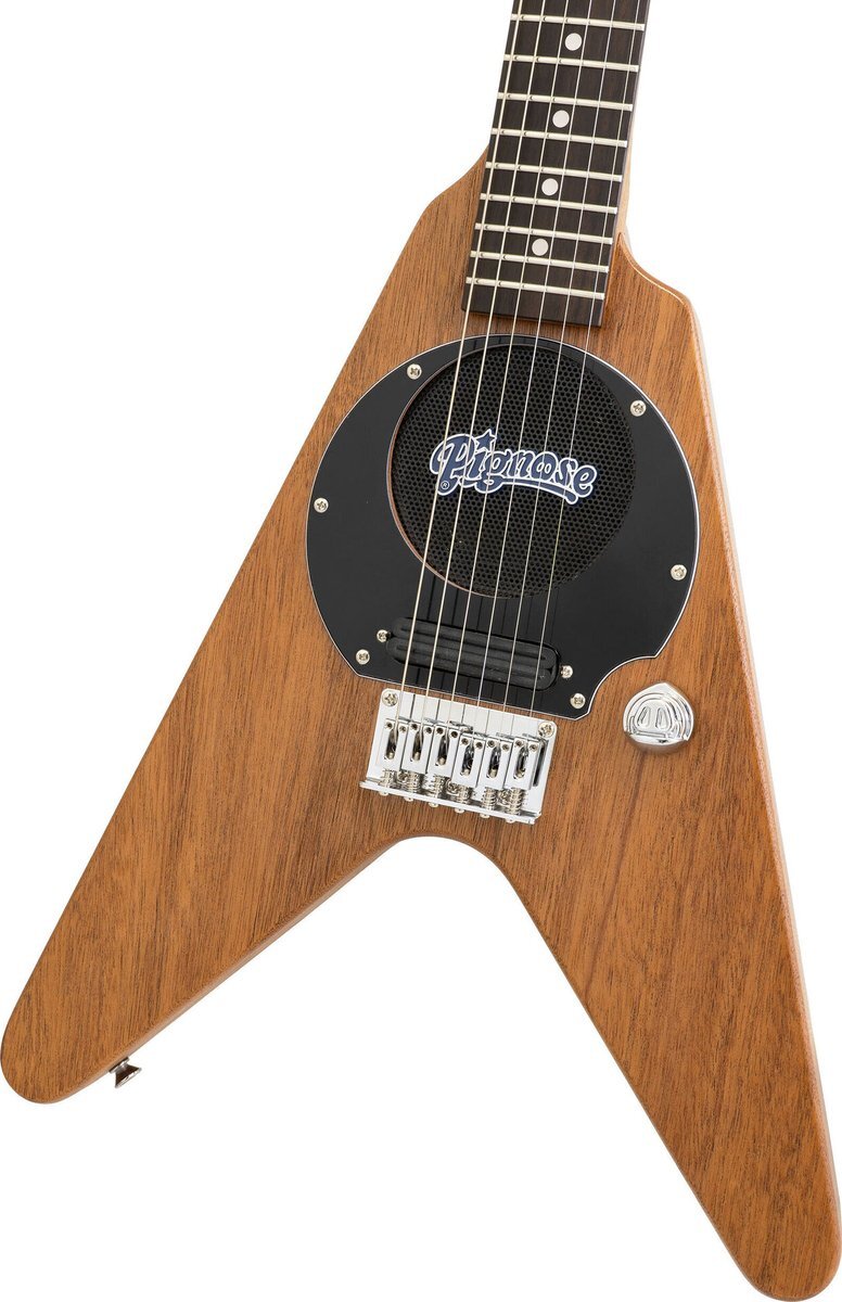 | ピグノーズ・アンプのコンセプトを受け継いだユニークかつ実用的なコンパクトギター ピックアップ&マイクロアンプ ギター用のピックアップには、マイクロサイズのツインバー・ハムバッキング、ベースにはカバードハムバッキングを採用。オリジナル・マイクロアンプ、10cmスピーカーとの組み合わせにより、サイズからは考えられない強力なドライブサウンドを生み出します。 オープンバック構造 ギターアンプと同じオープンバック構造を採用。パンチングホール入りのバックプレートにより、ナチュラルで気持ちのいいサウンドを生み出します。 アウトプット&ヘッドフォン・ジャック アウトプットジャックを装備し、外部アンプに接続も可能。夜に練習したくなった時や自分の世界に浸りたい時は、ヘッドフォン・ジャックに手持ちのヘッドフォンを接続すれば、スピーカーからの音が消えて周りを気にすることなく演奏できます。 ※内蔵アンプにはボディ裏側から調整が可能なボリューム調整トリマーが装着されています。 ボリューム調整トリマーは出荷時に適正に調整されています。トリマーを右いっぱいに回すと発振し演奏できない状態になる場合が有りますが、故障では有りません。発振したらトリマーを左側に回しアンプのボリューム設定を下げてください。 また、トリマーは少しの調整で大きく音量が変わります。微妙な調整が必要ですのでご注意ください。 Body:Mahogany Neck:Mahogany,Bolt-on,Pitched Head Fingerboard:Rosewood Frets:22 F Scale:610 mm Pickup:Original Mini Humbucking Control:Volume w/push-pull power switch(built-in Micro Amplifier) Speaker:10cm Full range Jacks:Output,Headphone(Mini Jack) Battery:9V(006P9V) Tailpiece:Fixed Bridge Hardware:Chrome Finish:STBR(Stained Brown) ご注意 木部分には木目、色味等の個体差があり、掲載の商品画像と異なる事がございます。また、ディスプレイの違いにより、実際の色と異なって見える場合がございます。 掲載されている内容は品質向上のため予告なく変更する場合がございます。 |