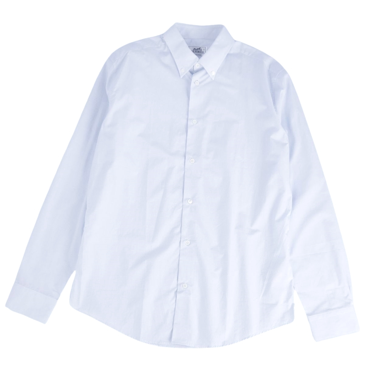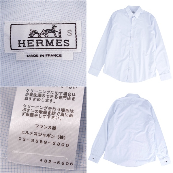 | 美品 エルメス HERMES シャツ ロングスリーブ 長袖 チェック コットン トップス メンズ フランス製 41/16(L相当) ブルー |
