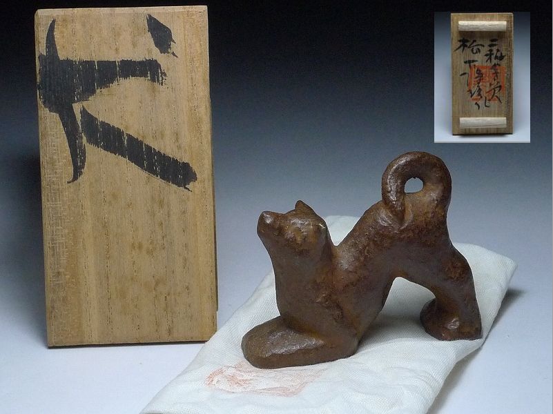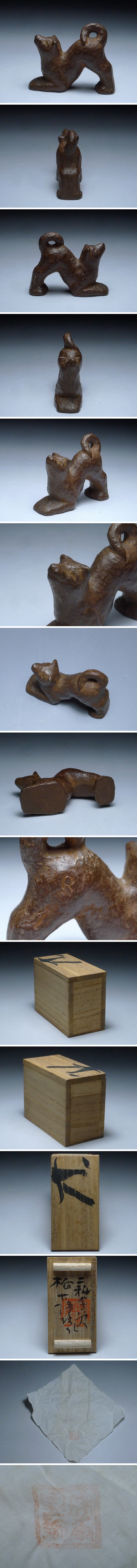 60MK118★二科会員 松下隆治作・銅製 干支「犬」文鎮・共箱共布付き・ブロンズ・置物 飾り 書道具 金属工芸3210