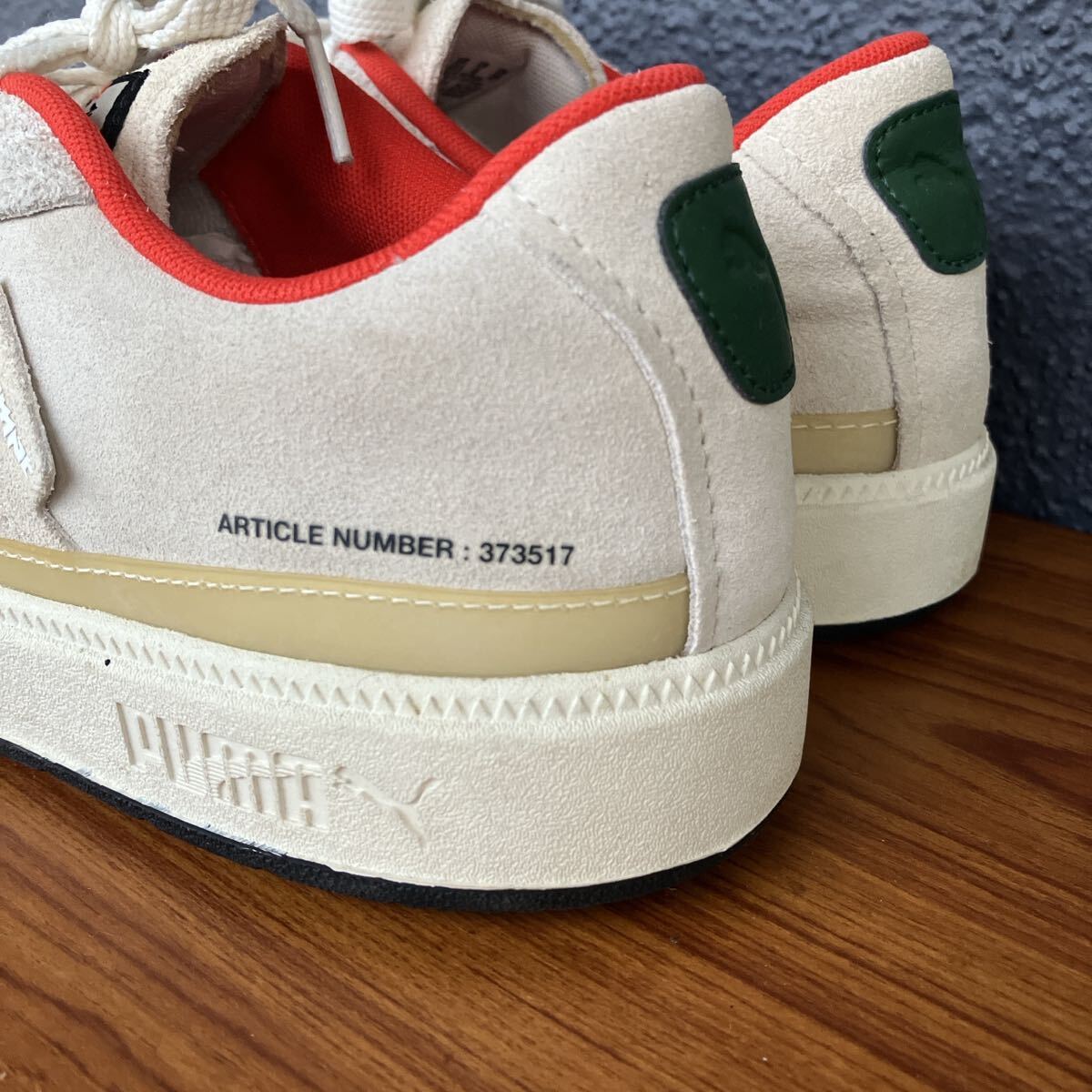 「hackingthearchive」をテーマにした、プーマ/PUMA×アテンプト/ATTENPTのコラボ商品。アテンプト/ATTENPTは中国のアーバン・ストリートなカジュアルウェアをデザインするレーベル。クラシックとプログレッシブ・スタイル、天然素材とテッキーなディテール。トーナルとカラフルなど、相反する要素が高次元で融合した新鮮で斬新なコレクションに仕上げられています。ミニマリスト美学がスポーツの伝統と組み合わさった一足。また細部へのプレミアムなこだわりを兼ね揃えています。すっきりとしたルックとポップなブランディングが自慢のアイテムです。