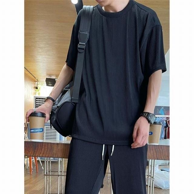 夏物 カジュアル ルームウェアセットアップ メンズ Tシャツ Tシャツ 半袖 上下セット 接触冷感 ブラック M
