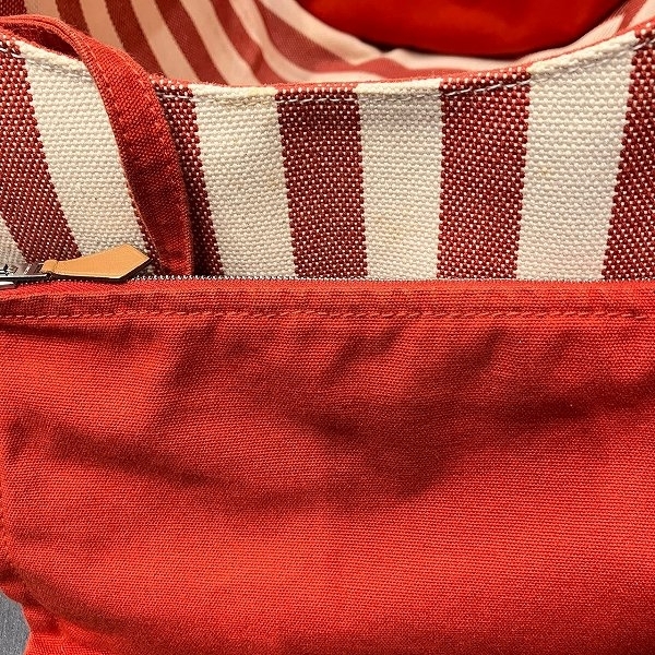 | 【ブランド】エルメス 【商品名】カンヌPM 【カラー】レッド×ホワイト 【素材】キャンバス 【仕様】外側:ポケットなし 内側:ポケットなし 【サイズ】H約27cm×W約34cm×D約19cm 持ち手:約26cm 【付属品】ポーチ 【ランク】B (使用感あり)【状態】 持ち手:毛羽立ち、極小程度有り 外側の状態:染み、小程度有り 内側の状態:染み、小程度有り 金具の状態:擦れ、極小程度有り 付属品の状態:汚れ、小程度有り | |