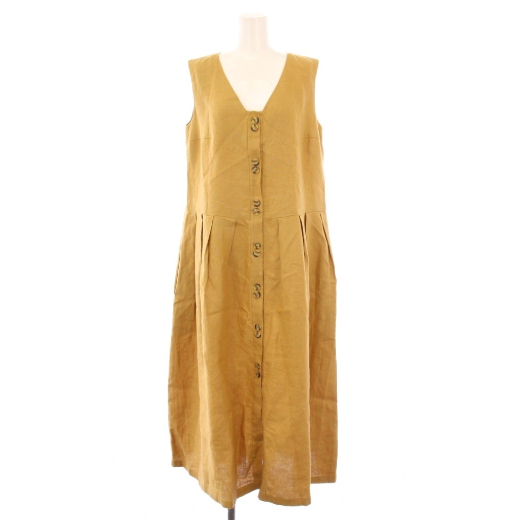 デミルクス ビームス 31 Chapel Lane リネンシンプルレディワンピース フレア マキシ ロング ノースリーブ Vネック XS 茶