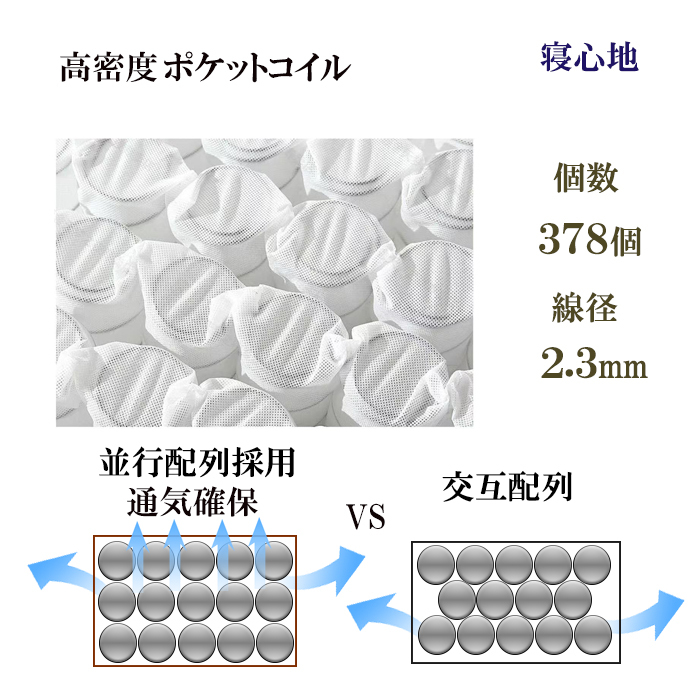 - 特徴: 高密度ポケットコイル、エッジサポート、全周4Dメッシュ