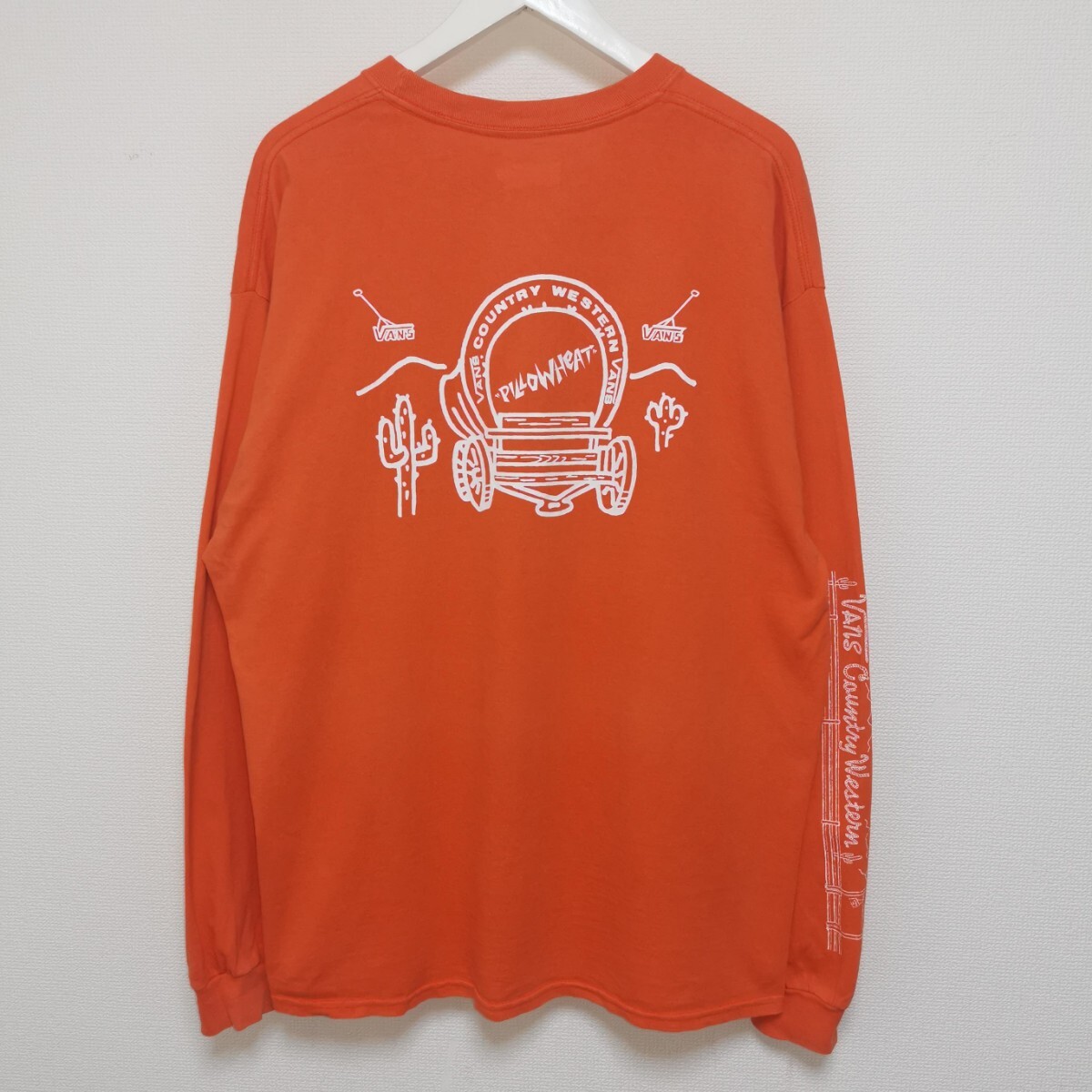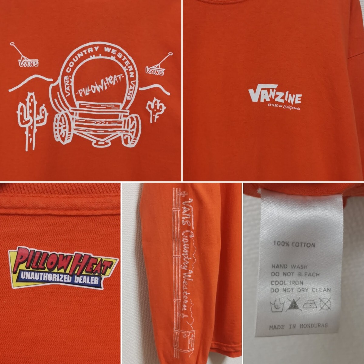 【コメント】:PILLOW HEAT×VANSのCOUNTRY WESTERNロンTです。HONDURAS製、希少な袖プリ入りのオレンジカラーになります。使用感の少ないコンディション良いお品です。昔のモノですので一応古着扱いでお願いします。