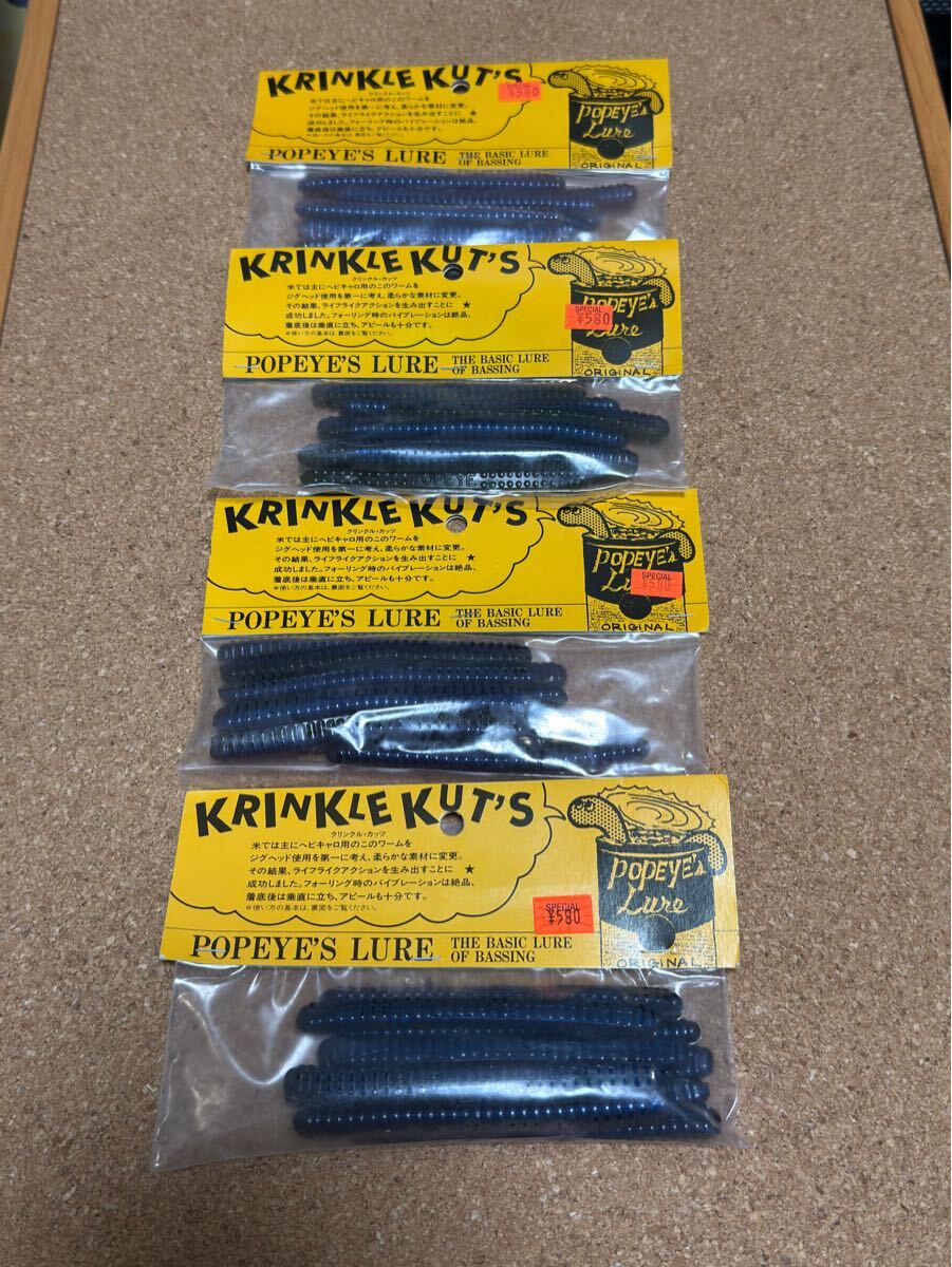 クリンクルカッツ4インチの未開封4色セットです。ワーム整理のため出品します。似てる色ばかりですが全て違う色です。