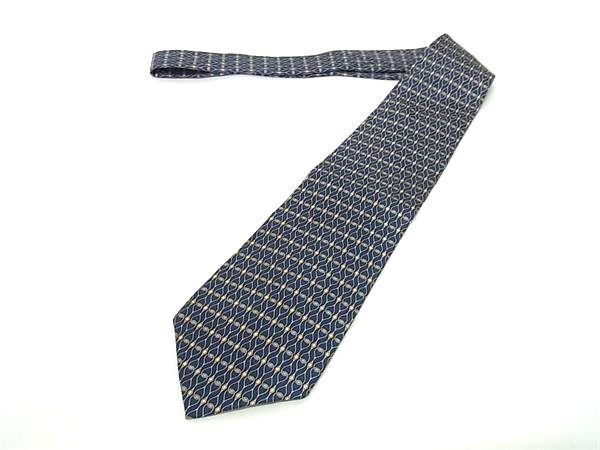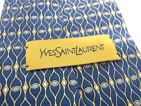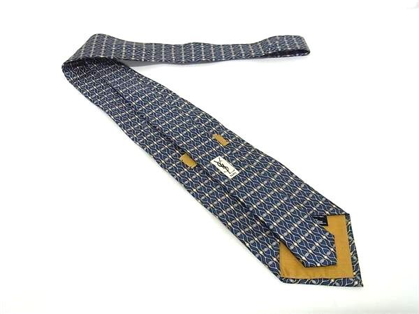 ■新品同様■ YVESSAINTLAURENT イヴサンローラン シルク100% 総柄 ネクタイ ビジネス 紳士 メンズ ネイビー系×マルチカラー DJ0980