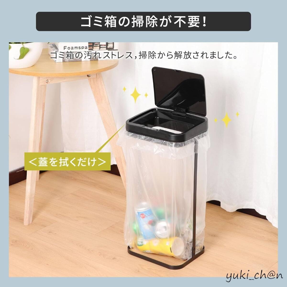 ◆底や側面がない構造で、本体にゴミや臭いが付きにくく、フタ部分だけサッと拭くだけで清潔を保てます。