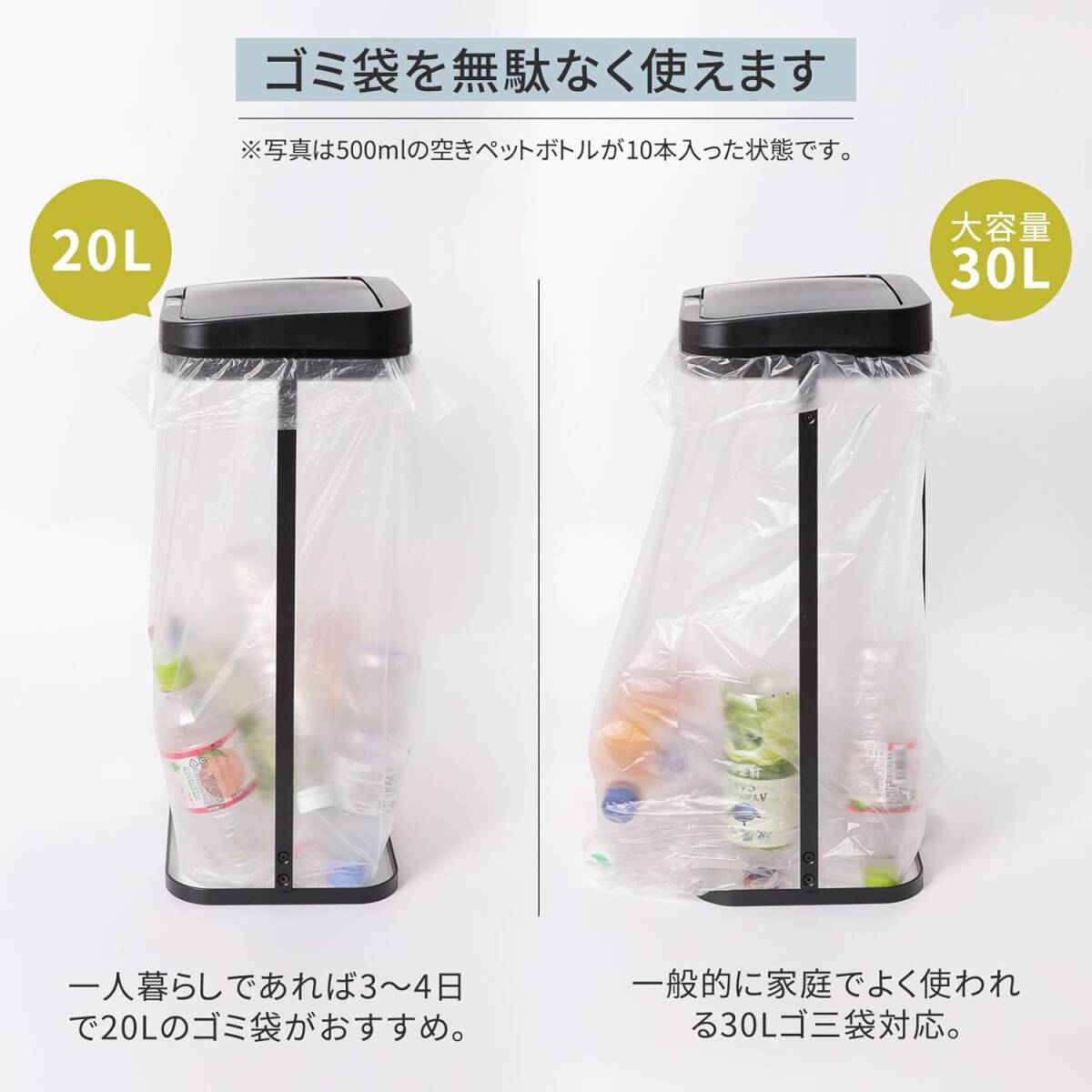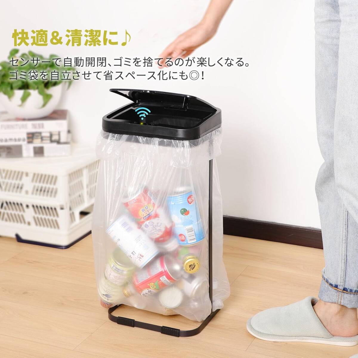 自動ゴミ箱 ゴミ袋ホルダー ごみ袋スタンド 蓋付き 20~30L対応 自動 センサー 分別 ごみ箱 開けっぱなし可 清潔 生活防水 省スペース 黒