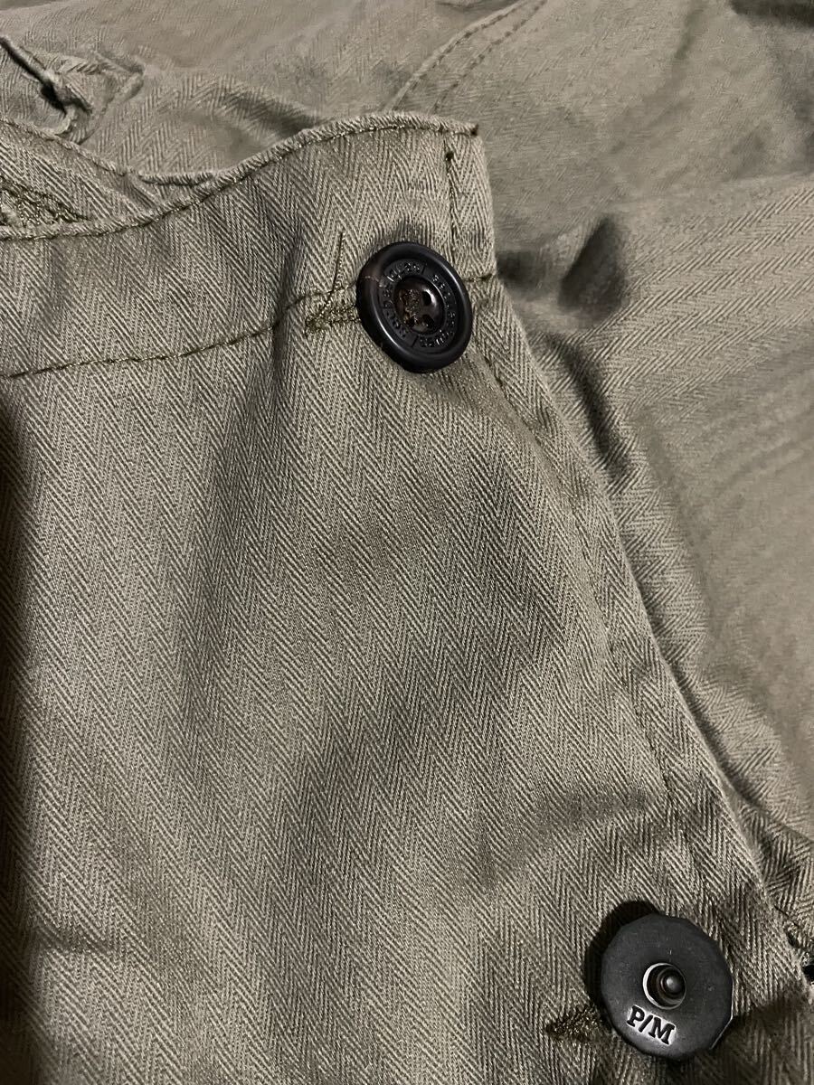 両脇トップボタンが取れてしまい新たにボタンを付け直ししています