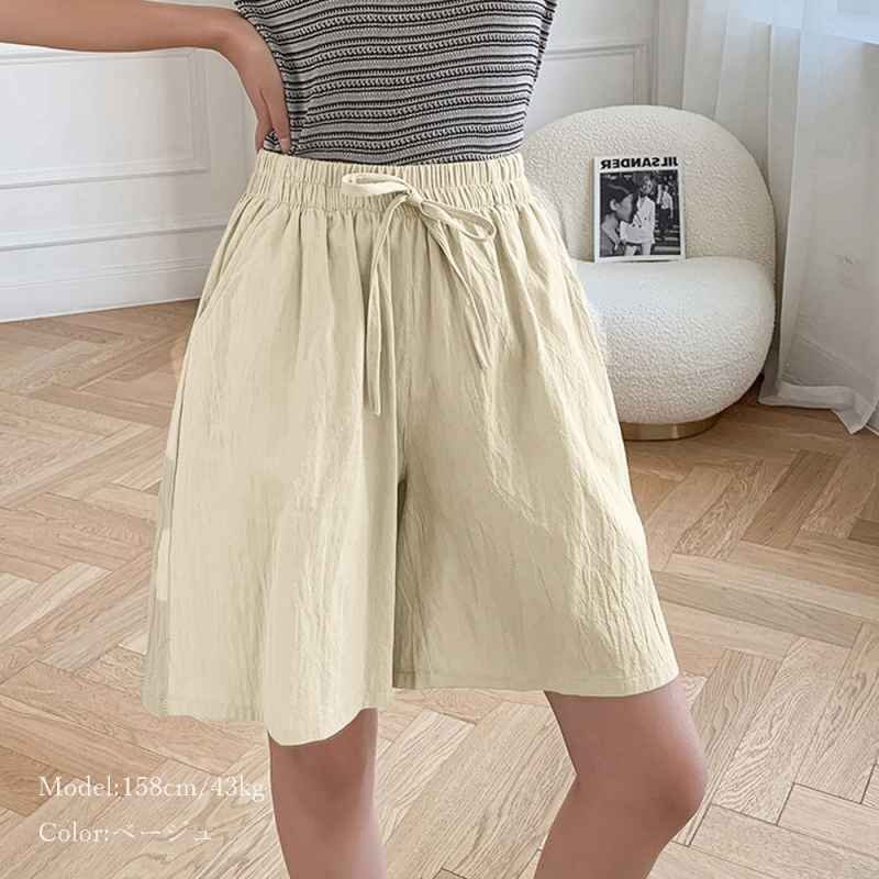 涼しくサラサラとした綿麻素材は夏のレジャーにぴったり。ウエストはゴム仕様で、ストレスフリーな穿き心地。シンプルで合わせやすく、カジュアルにはもちろん、大人レディーな雰囲気にも相性抜群です。