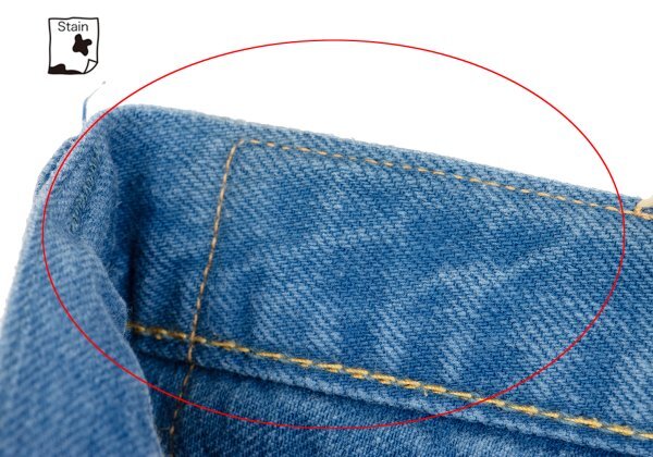 | コンディション | ウエスト裏に黄ばみ、ウエスト後ろに色移りがあります(写真参照)。その他目立ったシミ、汚れ、ほつれ等なくいい状態です。クリーニング済み。 |