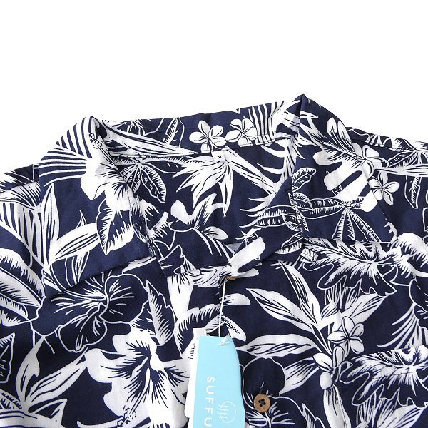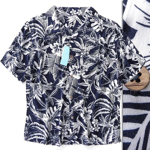 新品 未使用 紙タグあり Mサイズ チェスト88~96 ※写真は別サイズを使用している場合がございます※ ※商品に記載されたサイズ・寸法です※ 肩幅48cm 身幅59cm 袖丈23cm 着丈65cm レーヨン100% ネイビー×ホワイト |