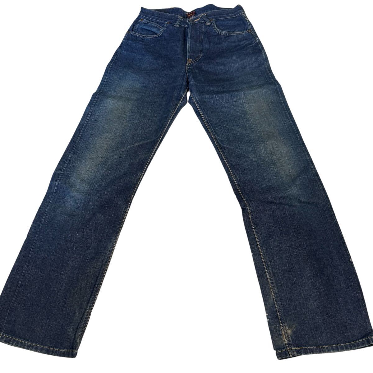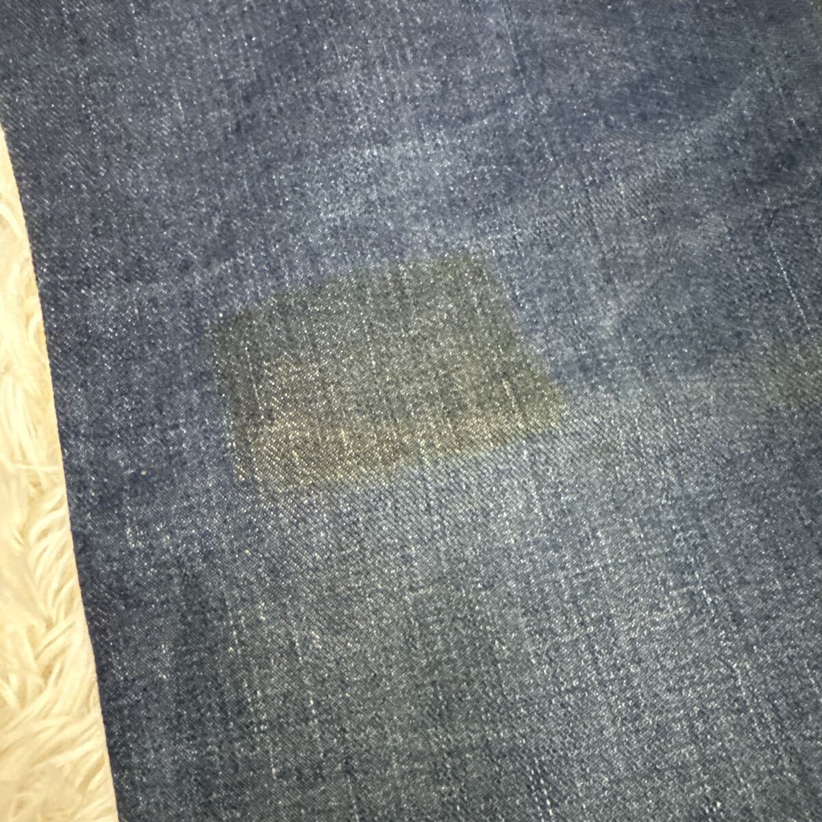 画像ラストに載せましたが、右膝の裏側が若干色が変わった箇所があります。それ以外は目立つスレや汚れ、傷やホツレはありません。(確認はしておりますが、私感ですので、見落としがあるかもしれません)