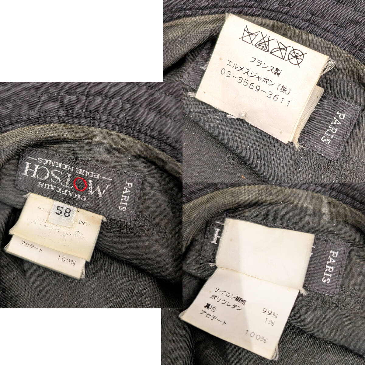MOTSCH HERMES モッチ エルメス バケットハット フランス製 帽子 キャップ ナイロン 黒 ブラック 【N】