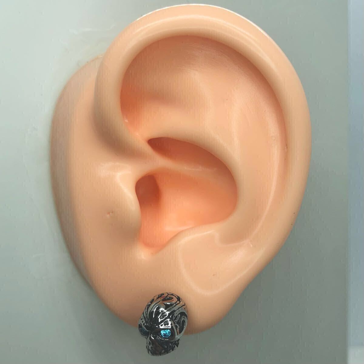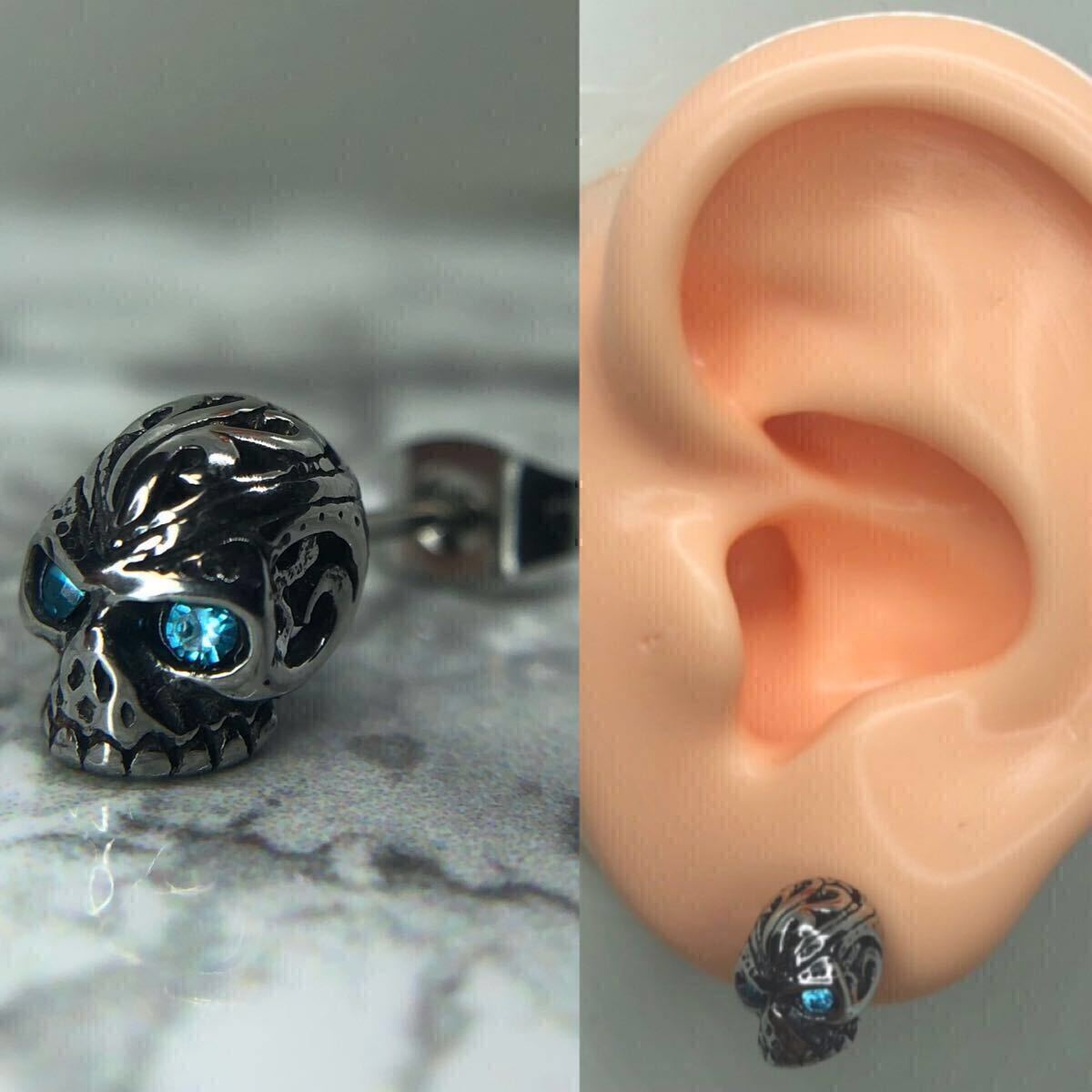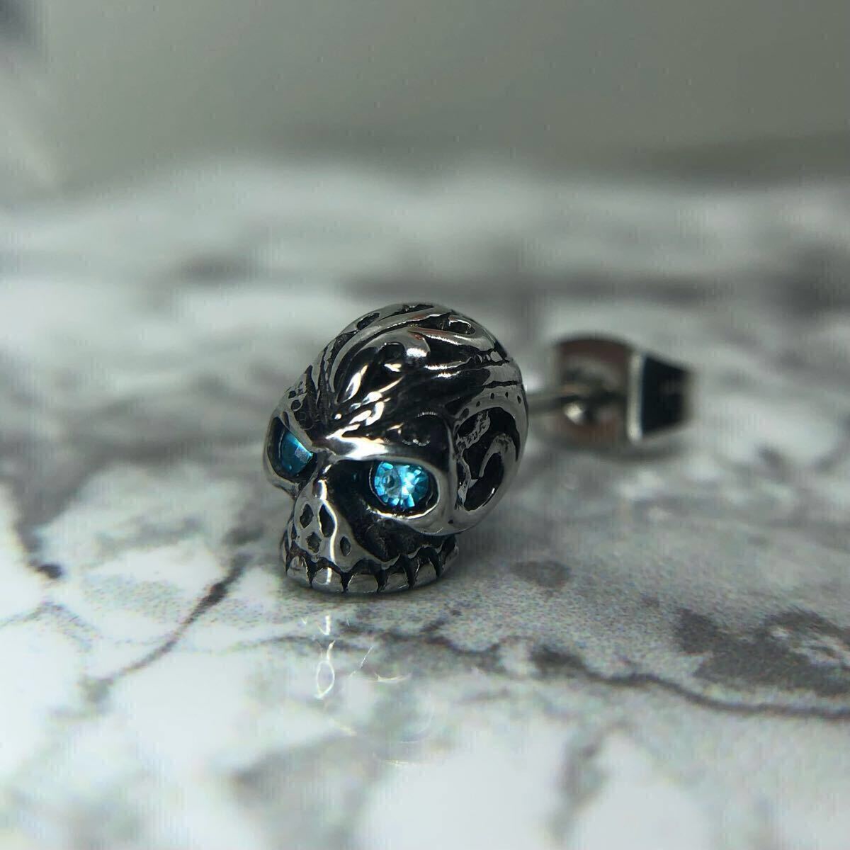 【新品】スタッド ピアス 18g 髑髏 骸骨 ドクロ ブルー アイ eye 民族模様 タトゥー シルバー アクセサリー 片耳用 韓国 hiphop メンズ ストリート