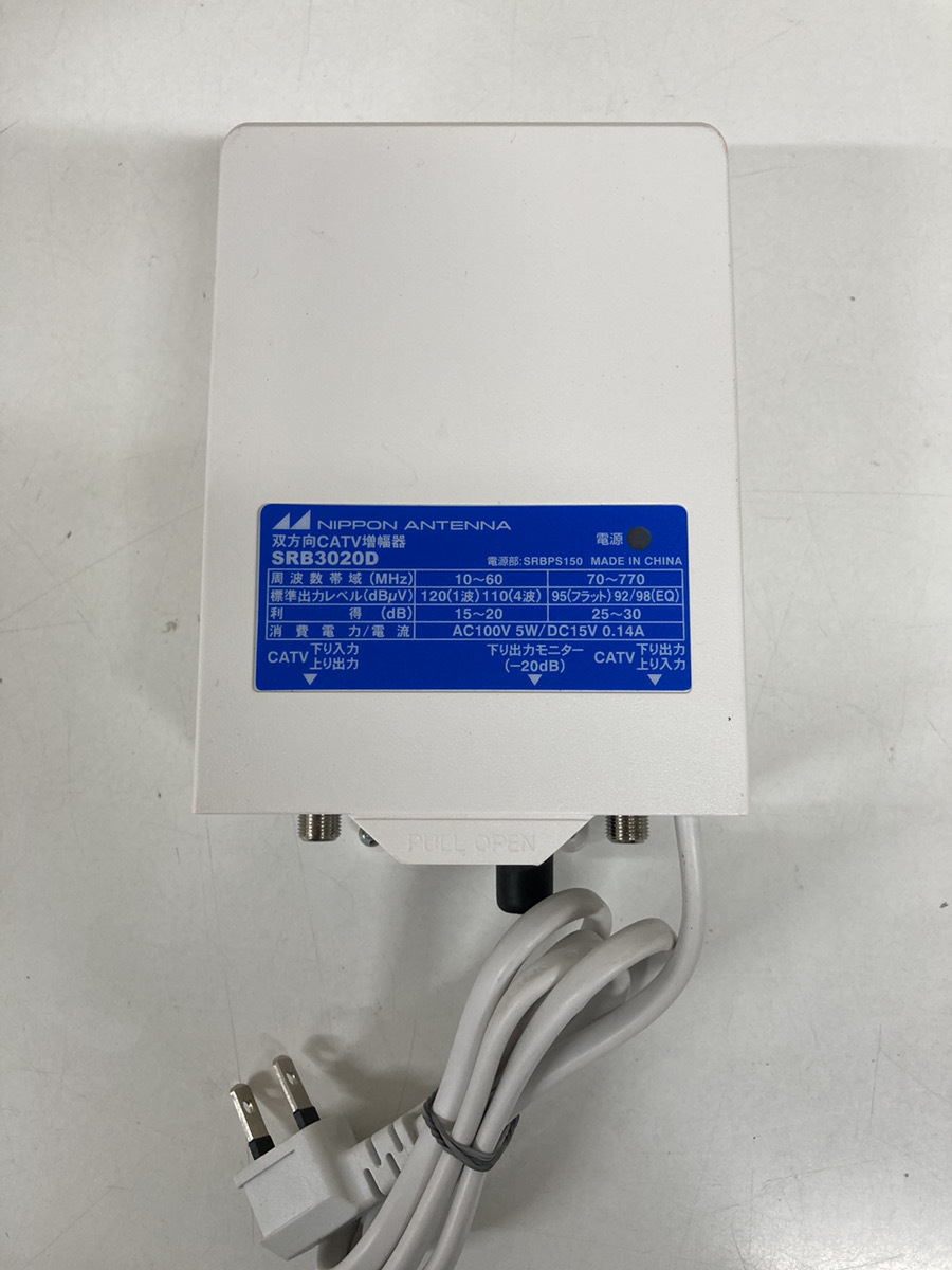 日本アンテナ CATV端末補償用ブースター(30dB型) SRB3020D 使用品 即決可能です