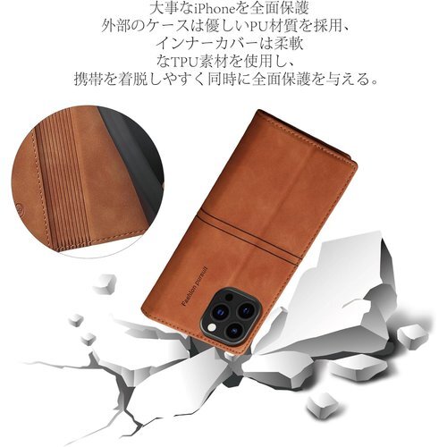2023新型iPhone15promax用ケース iphone 15promax ケース 手帳型スマホケース iphone 15promaxケース マグネット式 iphone15promax 専用ケース シンプル高級puレザーアイフォンケース 手帳型 カード収納 アイフォン 15promax 用 手帳型 ケース スタンド機能 全面保護アイホン15promaxケース ブラウン 2674
