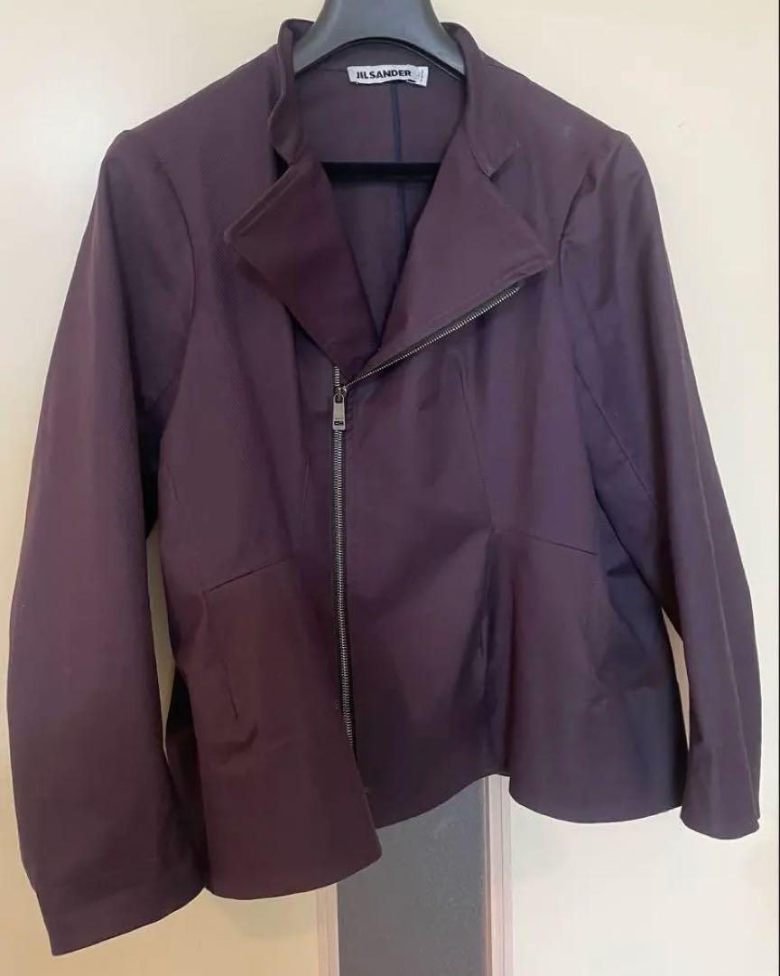 Jil Sanderのダークパープルのコットンエラスタン混紡ライダーズジャケットです。