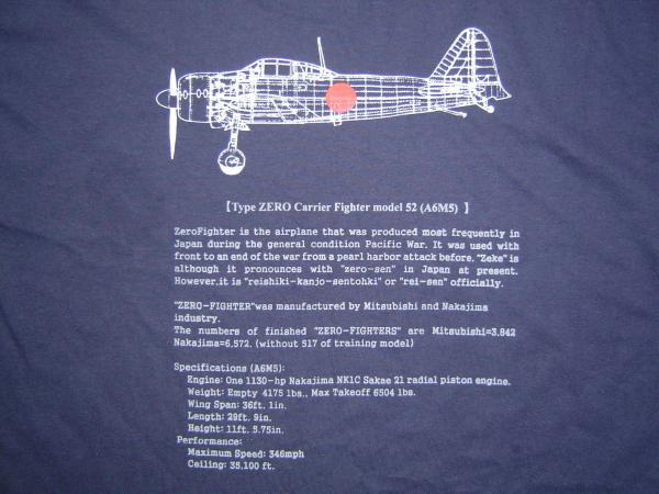 零式艦上戦闘機 英文解説プリント  零戦Tシャツ    02