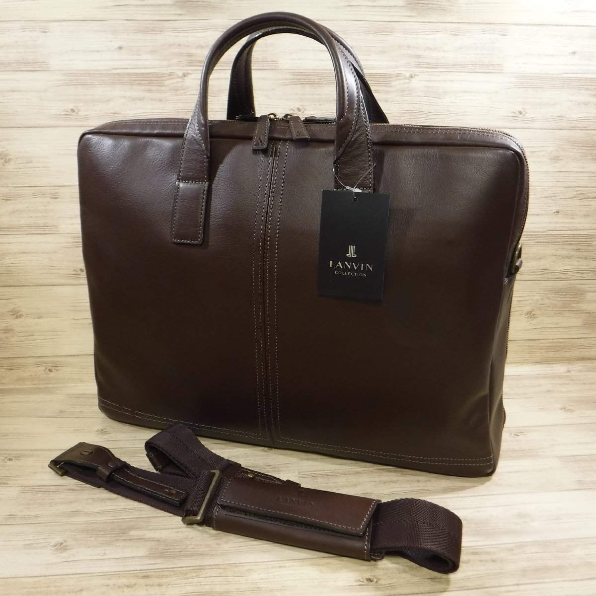 BB441 ランバン コレクション LANVIN 定価6万500円 新品 レザー 2WAY ビジネスバッグ 撥水牛革 ダブルルーム B4 サントル チョコ 286503