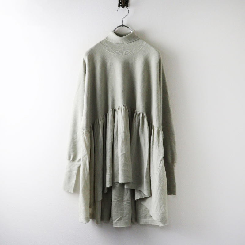 2023AW カレンソロジー Curensology ハイネックギャザーニット F/グレー系 トップス タートルネック プルオーバー【2400014499988】