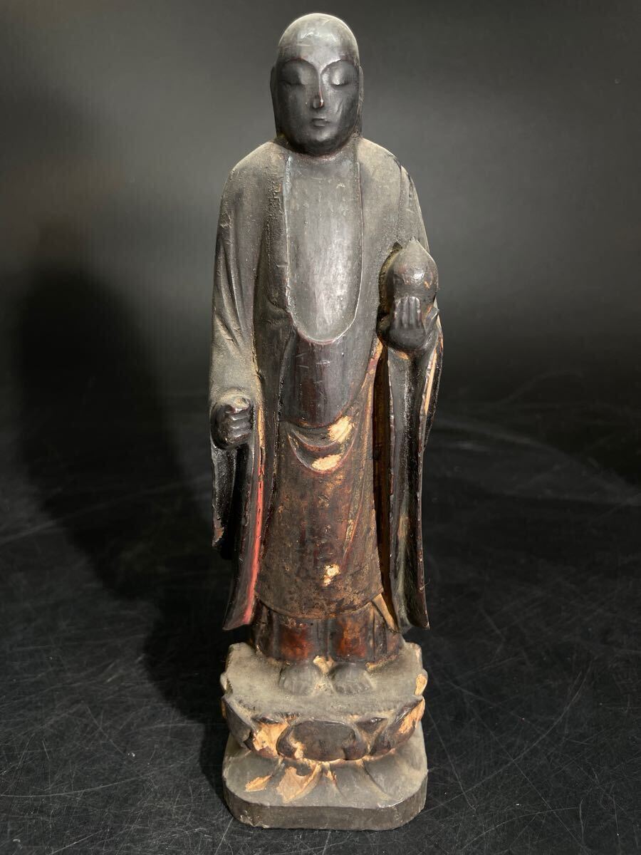 時代 木製 地蔵菩薩 厨子付 / 仏教美術 仏像 厨子仏 木工芸 木彫 金彩 煎茶飾 .G1860 |