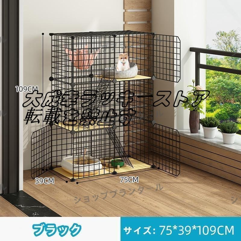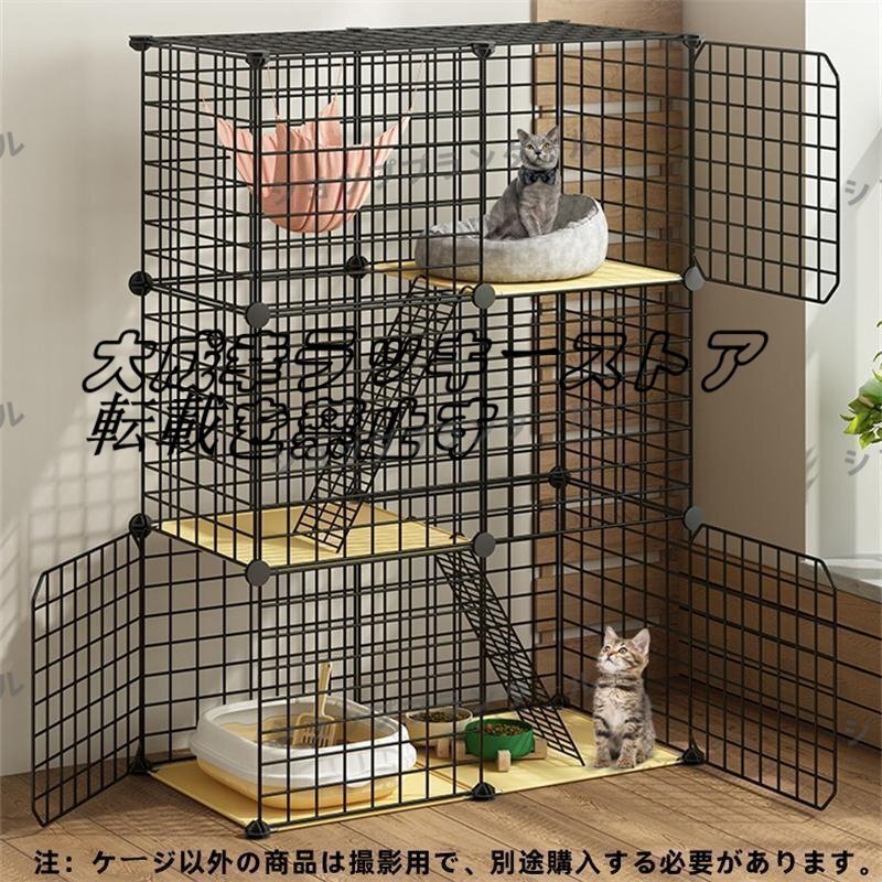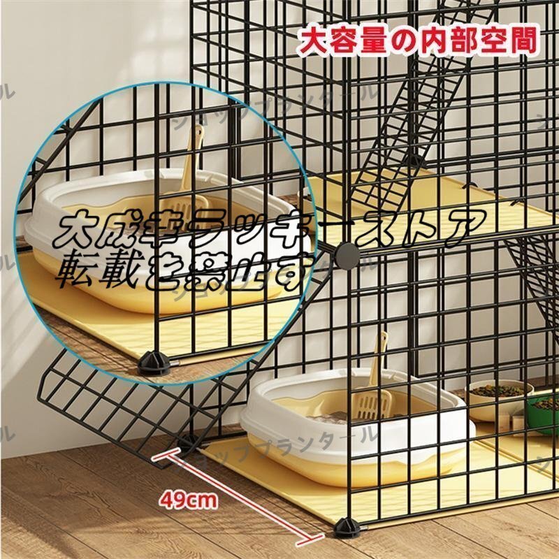【猫 ケージ ステップ自由に再編成された棚】:猫の状態に応じて、ステップを減らしたりリラックスしたりします。子猫から育ったときに長く使えるケージ。登り下りしやすい梯子が2個付き、子猫やシニア猫でも使いやすいです。