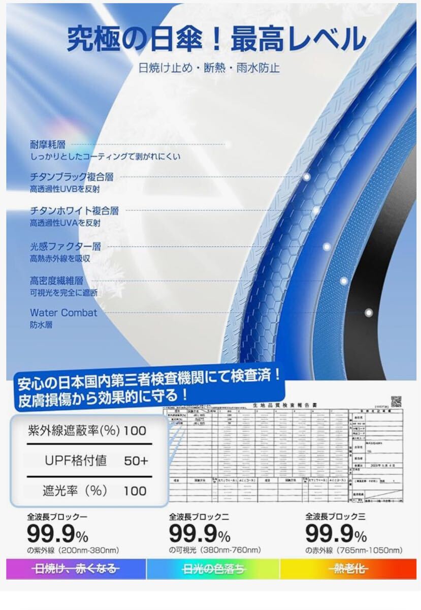【遮光率100%・UVカット率100%】太陽光を完全遮断! 厳格な検査基準に基づいて検査を行い、遮光率100%、UVカット率100%、UPF50+を実証した高機能の完全遮光折りたたみ傘です。 裏地にはブラックコーティング加工が施されており、しっかりとした質感で日差しをしっかり遮断します。完全に日光を防ぎ、紫外線対策に最適なアイテムです。