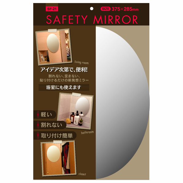 衝撃に強く割れません! ガラス製に比べて約半分以下の重さ。 ・プラスチックとアルミの複合素材で衝撃に強く割れません。 ・重さはガラス製ミラーの半分以下(約40%)です。 ・粘着テープで貼るだけの簡単取り付け。 ・ミラー表面はキズが付きにくいハードコート加工。 生産地 : 日本 サイズ : 商品サイズ(約):W285xD5xH375mm 素材 : ミラー材質:PETフィルム 耐衝撃性スチロール樹脂 アルミ樹脂複合板 注意事項 : ※凹凸の無い平面に取り付けてください。 高温の所(40度以上)では使用しないで下さい。 ミラー表面に研磨剤類を使用するとキズが付く場合があります。 くもり止めを使用する場合はフィルム製のものを使用してください。 ブランド : ケィ・マック |