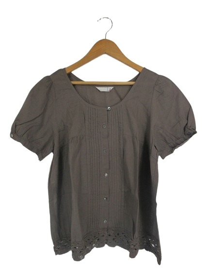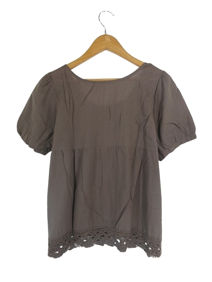 サマンサモスモス SM2 ノーカラー シャツ 半袖 センター タック レース 無地 サイズM カーキ QQQ レディース