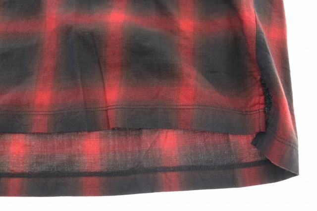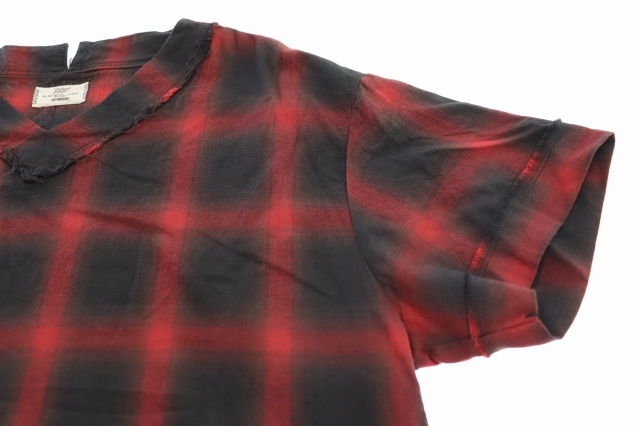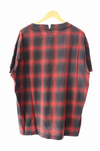 ラグスマックレガー Rags Mcgregor オンブレ チェック Vネック 半袖 カットソー L 黒 ブラック 赤 レッド ● 250630