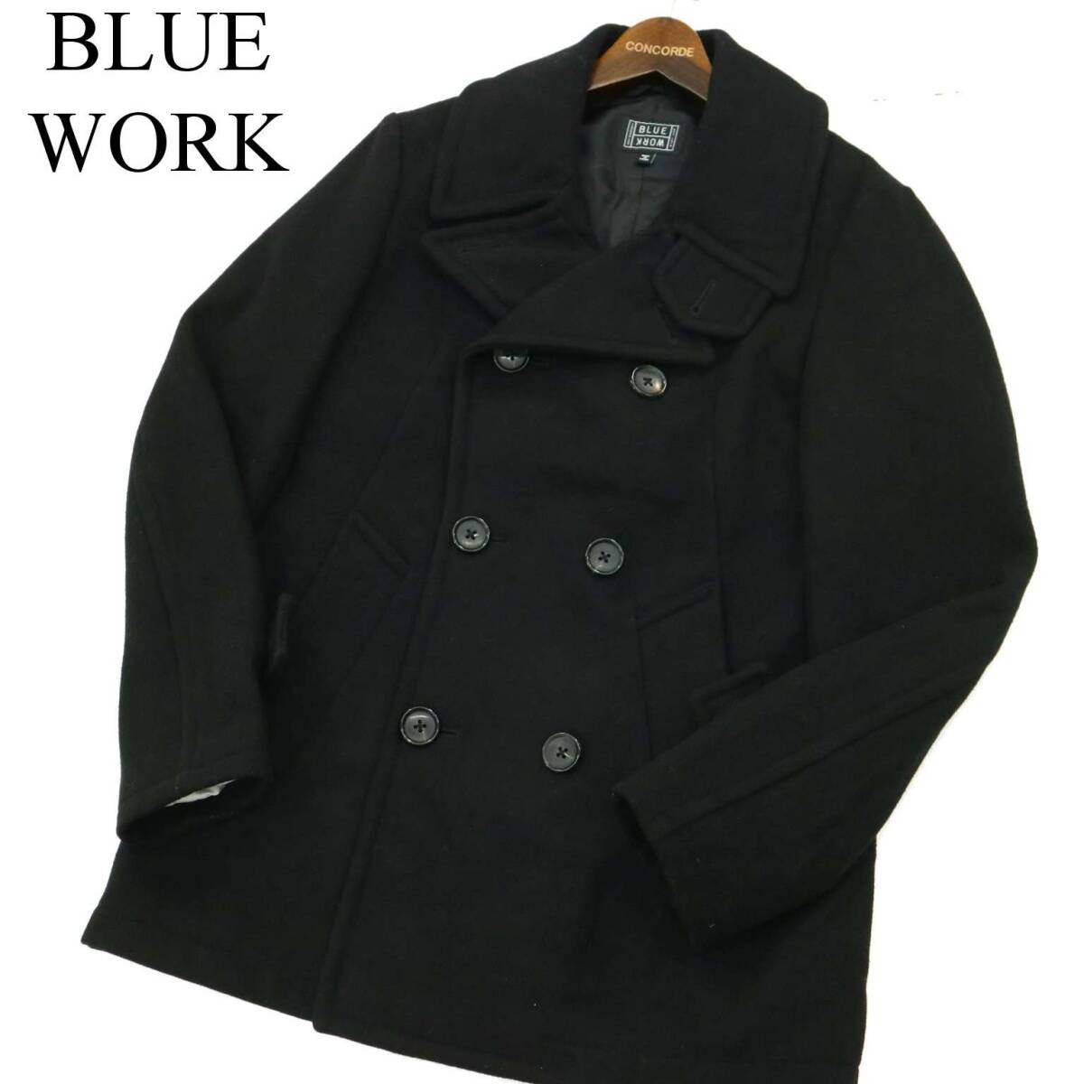 BLUE WORK ブルーワーク トゥモローランド 秋冬 メルトン ウール★ Pコート Sz.S メンズ 黒