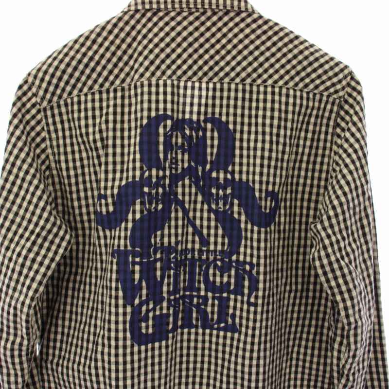 ヒステリックグラマー HYSTERIC GLAMOUR 18AW HYSTERIC WITCH GIRL長袖ワークシャツ チェック リネン S 白 黒 02183AH01 /TK メンズ
