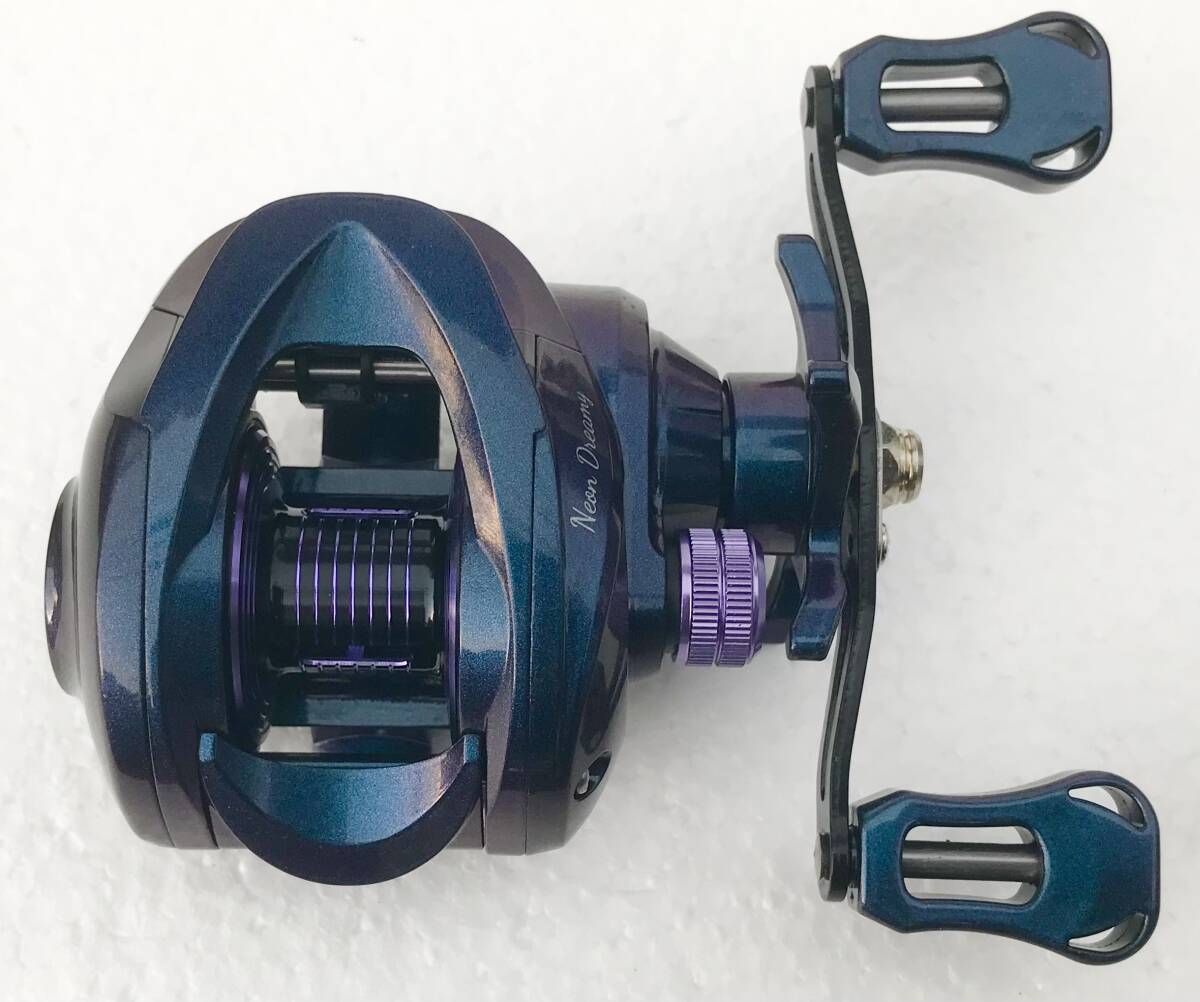 写真のHAUT TONベイトキャスティングリール ネオン ドリーミーND200右ハンドル(新品未使用)を発送します(送料無料)。