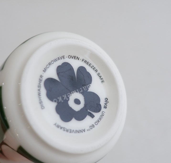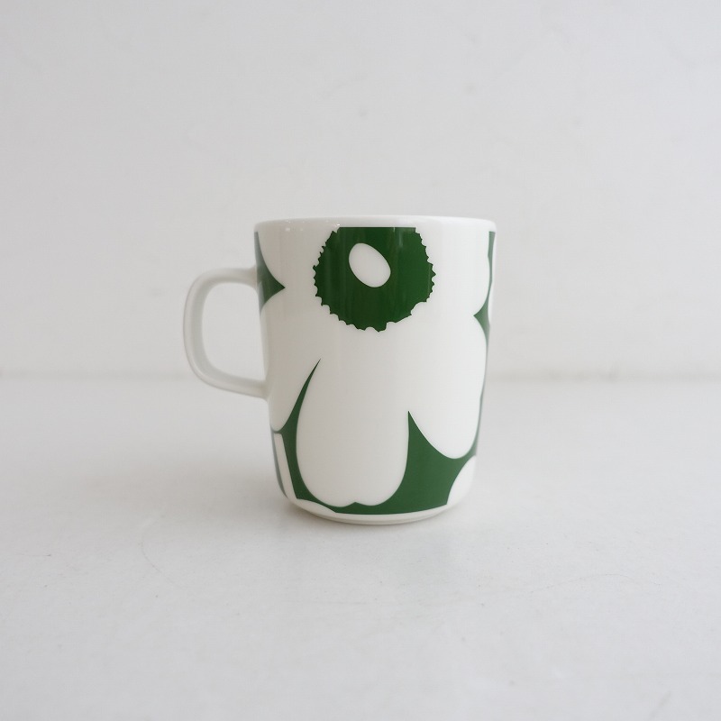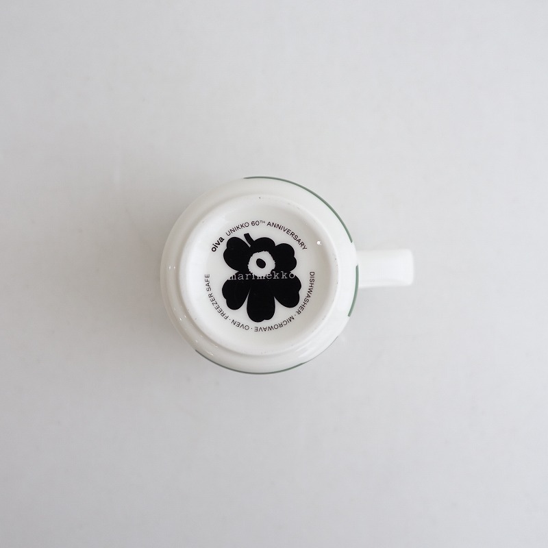 | 60周年限定/marimekkoのUnikko ウニッコ マグカップ ホワイト×グリーンです。 カラーはホワイトベースにグリーンで、marimekkoを代表するケシの花がモチーフのウニッコ柄です。 |