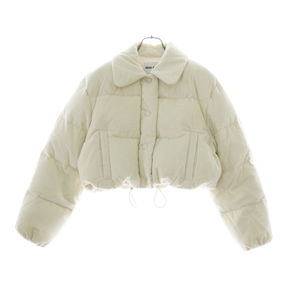 miumiu ミュウミュウ コーデュロイ クロップド ロゴ ダウンジャケット ホワイト ML719 レディース