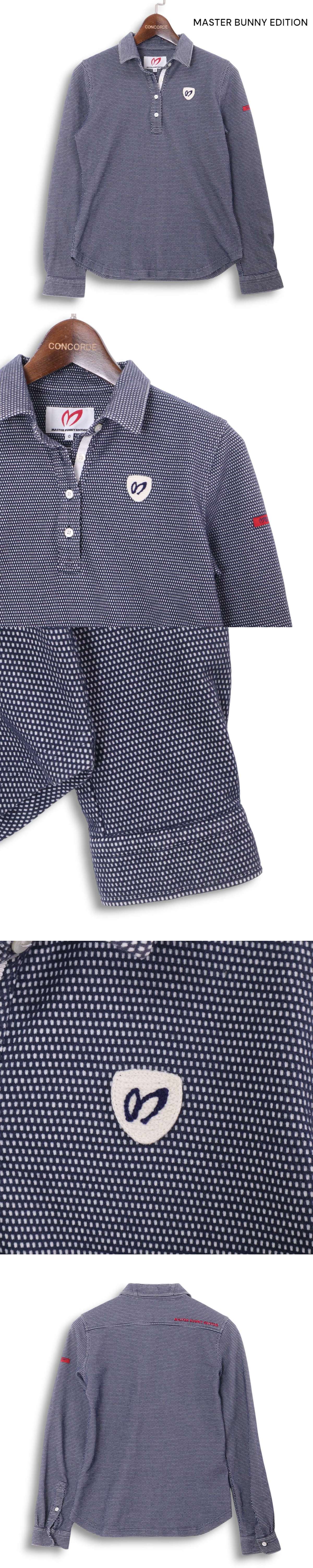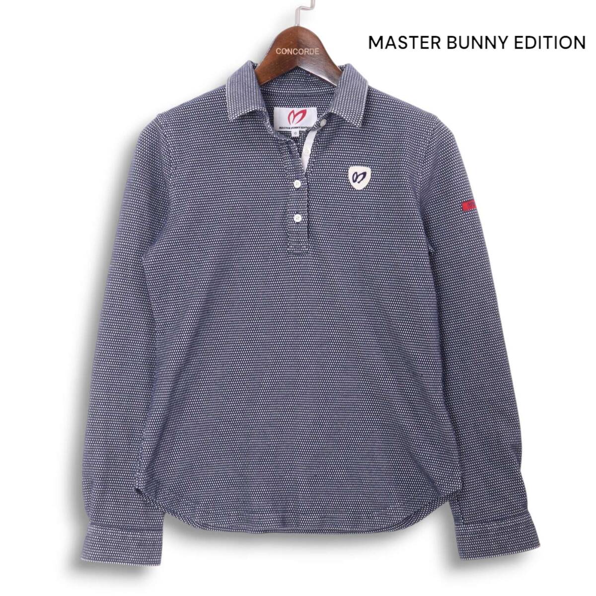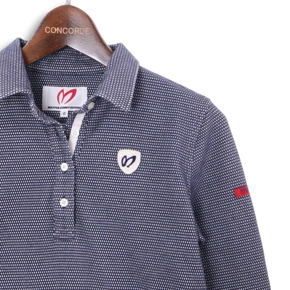 MASTER BUNNY EDITION マスターバニー パーリーゲイツ ゴルフ 通年★ 長袖 ロゴ ワッペン ポロシャツ Sz.0 レディース 紺