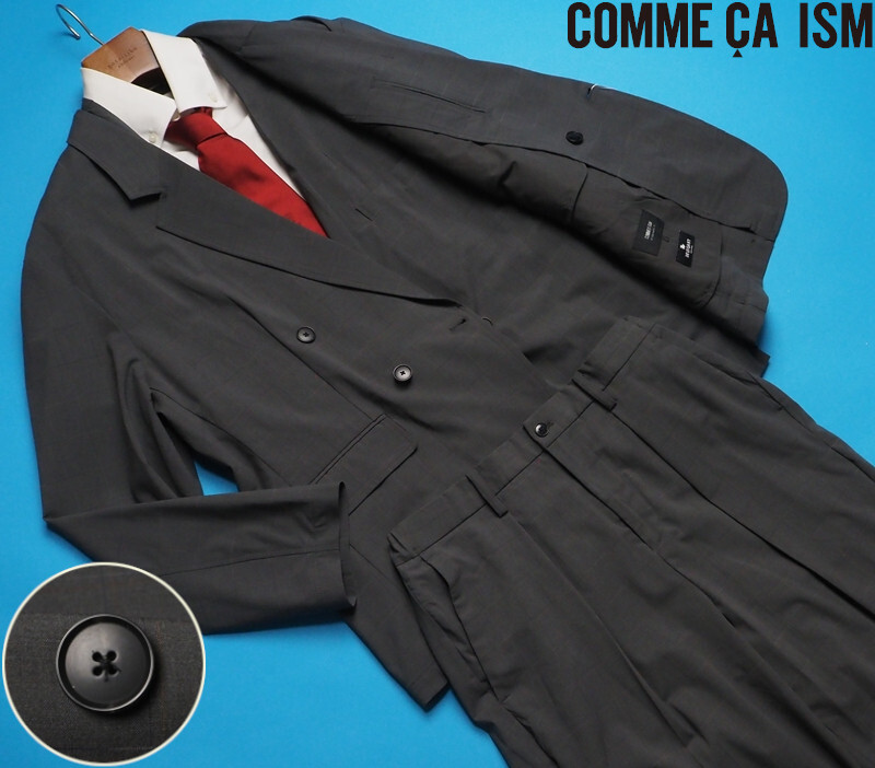 新品定価3.3万円 COMME CA ISM コムサイズム ウォッシャブル かすりチェック ダブル スリーピース スーツM灰(04) 25JC13/55PC13/03VC13