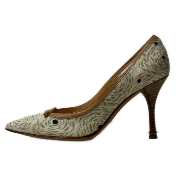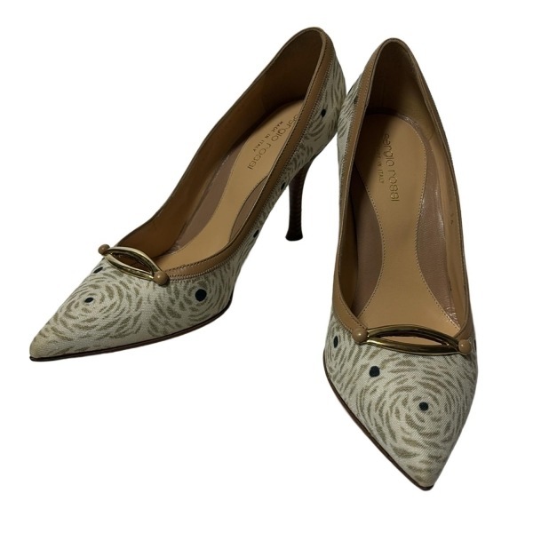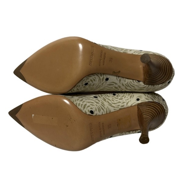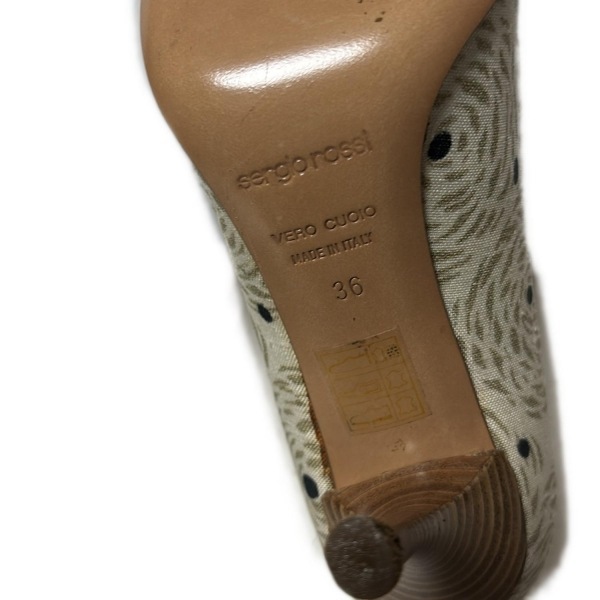 セルジオロッシ sergio rossi パンプス 36 - コットン、レザー アイボリー×ベージュ×マルチ レディース ドット柄 靴