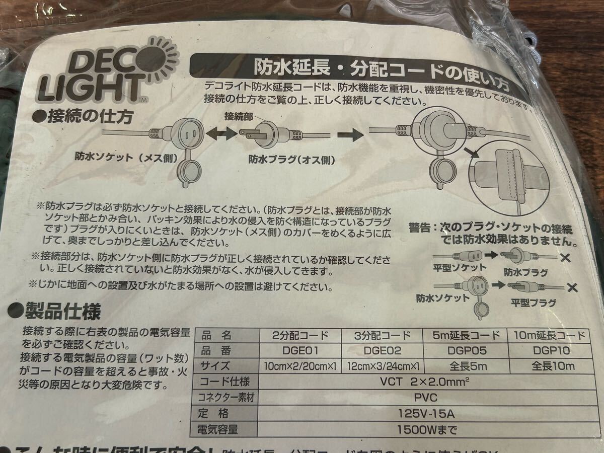 未使用品 DECO LIGHT デコライト 防水延長コード 分配コード セット 現状品 説明文必読
