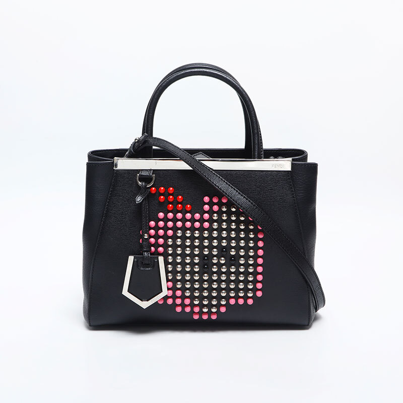 フェンディ FENDI ショルダーバッグ レザー スタッズ リンゴ トゥージュール ブラック