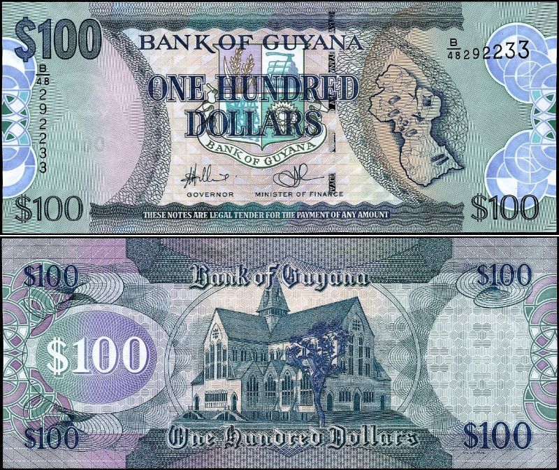 ガイアナ 100ドル紙幣 ND 2012年~ 156mm×65mm <48292233>