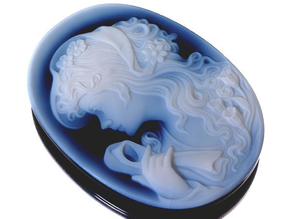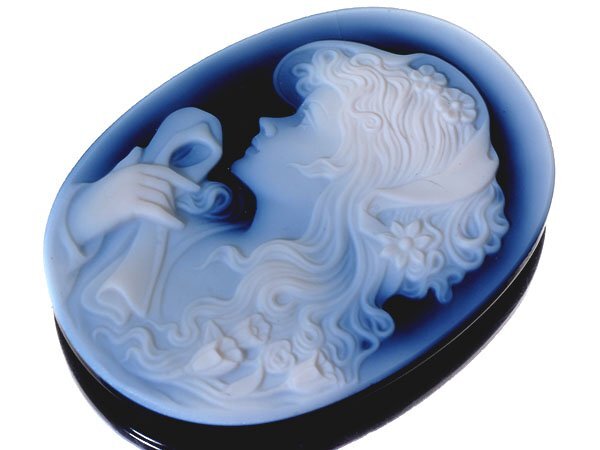 上品な貴婦人を繊細に彫刻で演出した、魅力的な高級ブルーストーンカメオルースです!