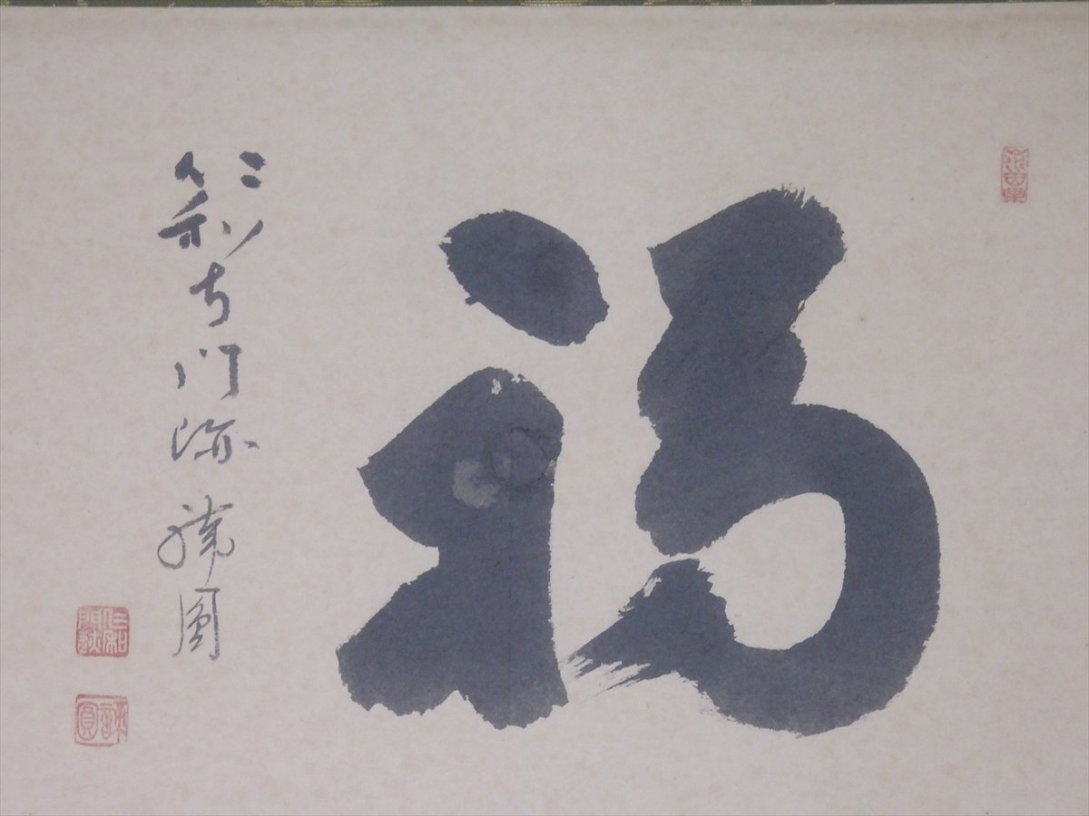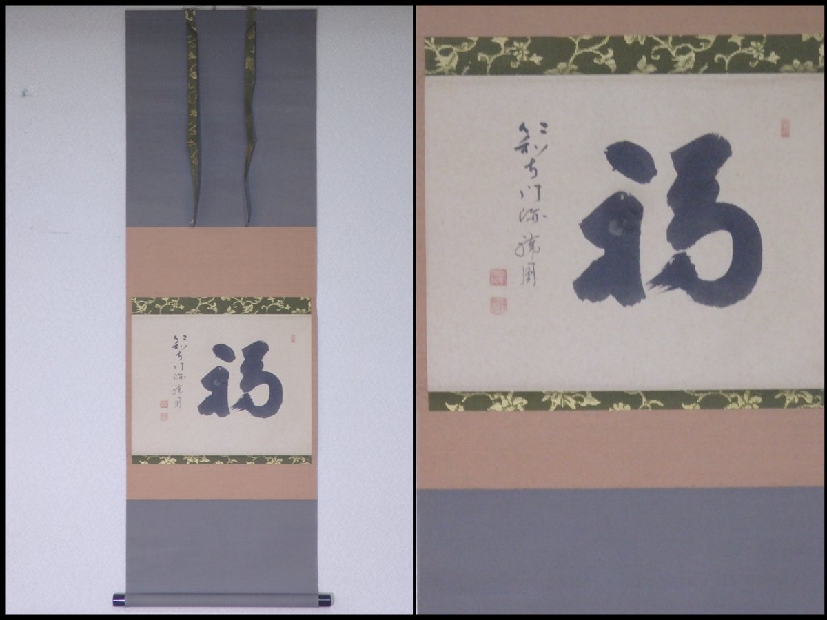 ★仁和寺門跡 森諦圓 直筆【掛軸『福』木箱入り】紙本 幅36.3×全長113cm セール! 茶道具 茶掛け